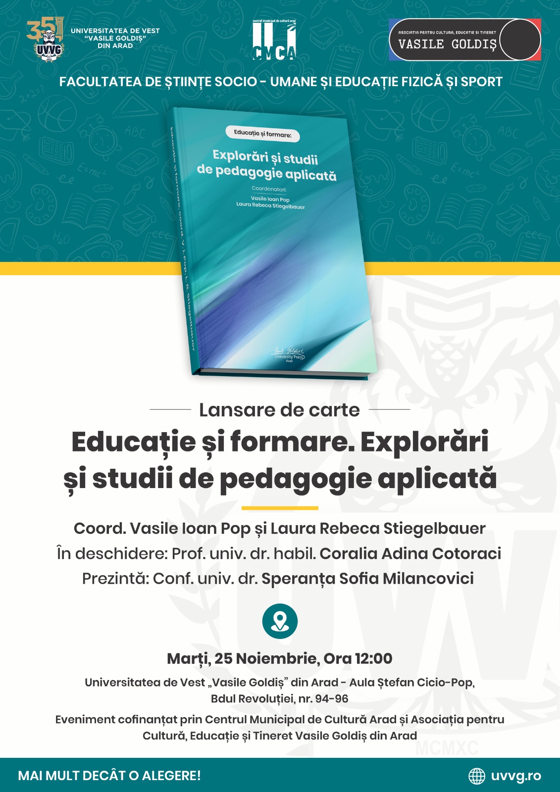 Universitatea de Vest „Vasile Goldiș” din Arad oferă un mediu oportun de învățare și creștere personală. Beneficiind de aceste opțiuni de studiu, studenții noștri vor dobândi atât competențe intelectuale cât și tehnice.